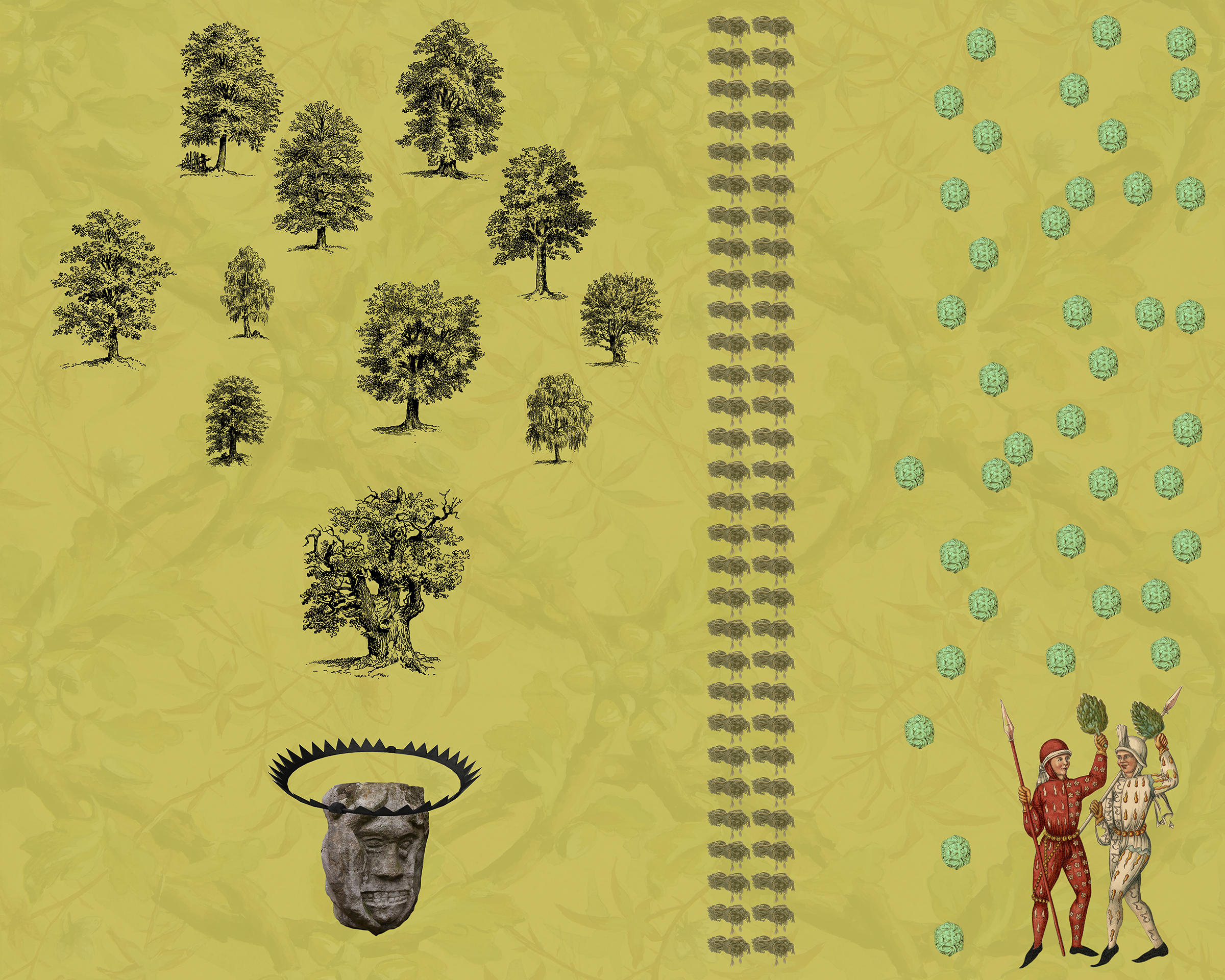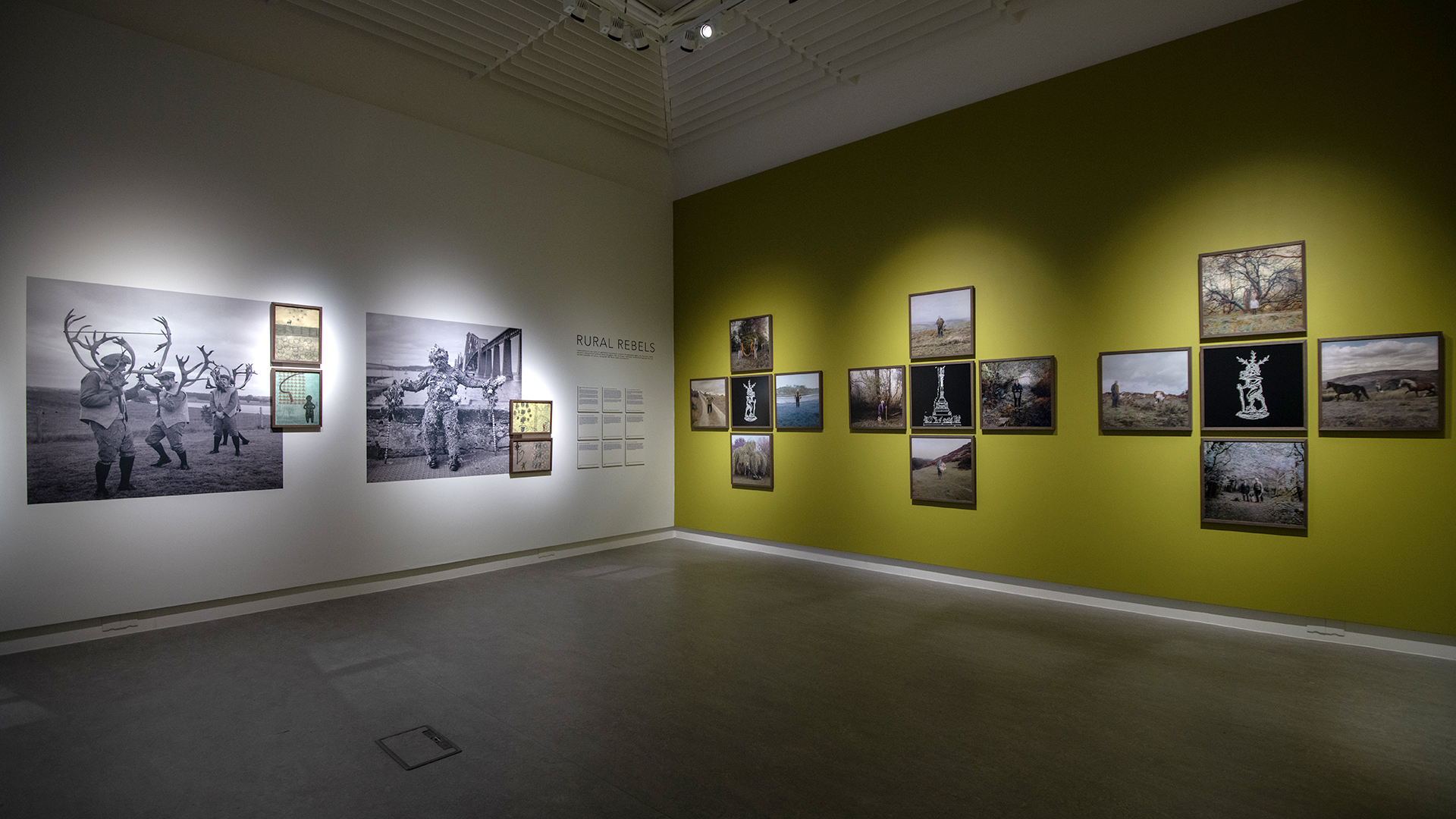 PART II | RURAL REBELS looks at the history of protest against enclosure and other loss of rights. Such protests were usually small, local, and harshly punished by the courts, and they have largely been forgotten now. These photomontages depict artefacts of peasant life, shown alongside representations of rural traditions, and objects relating to the brutal enforcement of land ownership...man traps, barbed wire and measures. They question the nature of land ownership and people’s access to the land, with reference to contemporary activists fighting for the right to roam or to have allotments. The montages are exhibited with Gordon’s large-scale photographic portraits of UK folk traditions to show how these, often ancient, rituals have performed the boundaries, histories, and customs that mark our relationship to the land.
